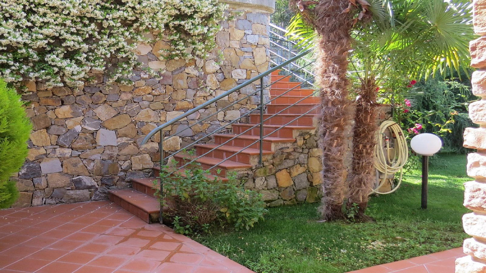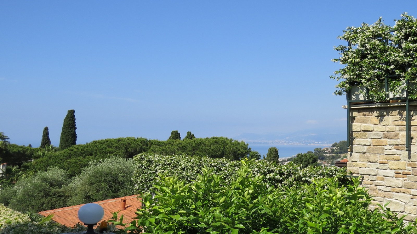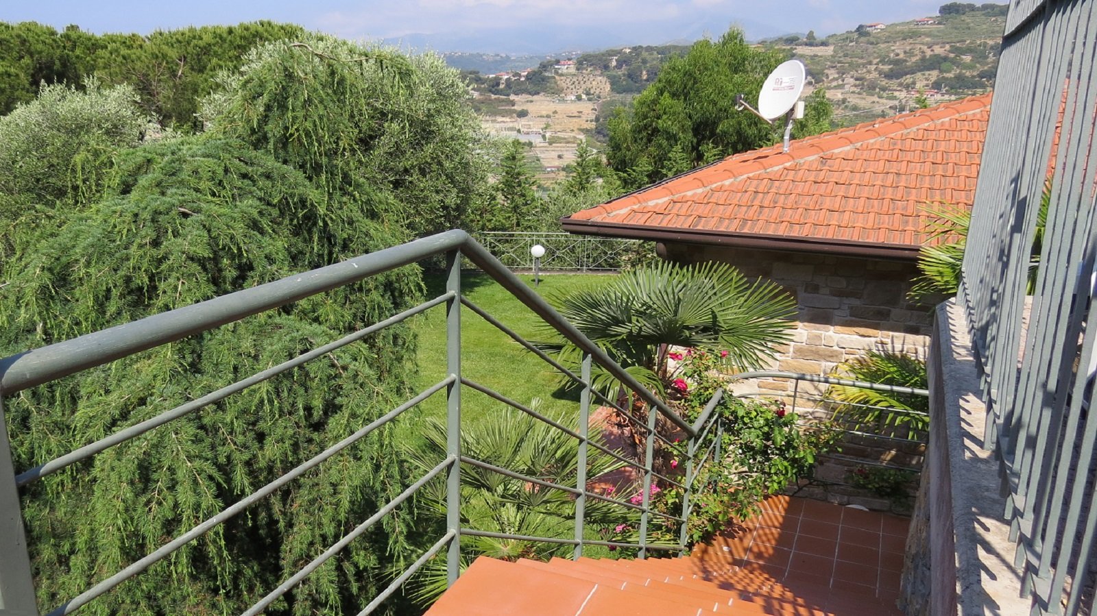 In zona collinare, comoda all'uscita autostradale, vendiamo graziosa villetta di circa 115 mq. vista mare e con piscina di nuova realizzazione, immersa nel verde, tra i fiori e i profumi mediterranei. Dalla loggia porta di entrata su disimpegno, due camere da letto, due bagni, una lavanderia, cucina abitabile e sala accerchiata dal prato e con uscita sul portico. Il giardino è di circa 300 mq. e a completare la proprietà ci sono due posti auto scoperti.