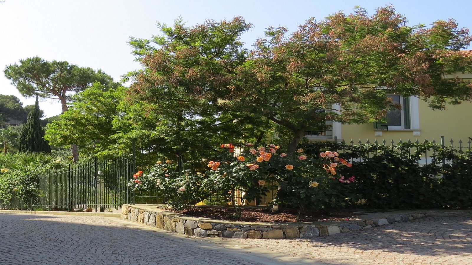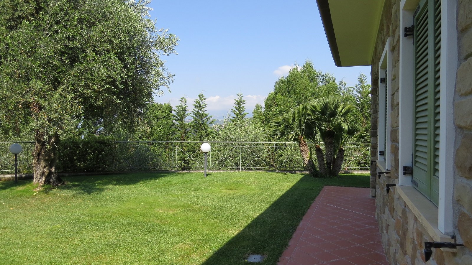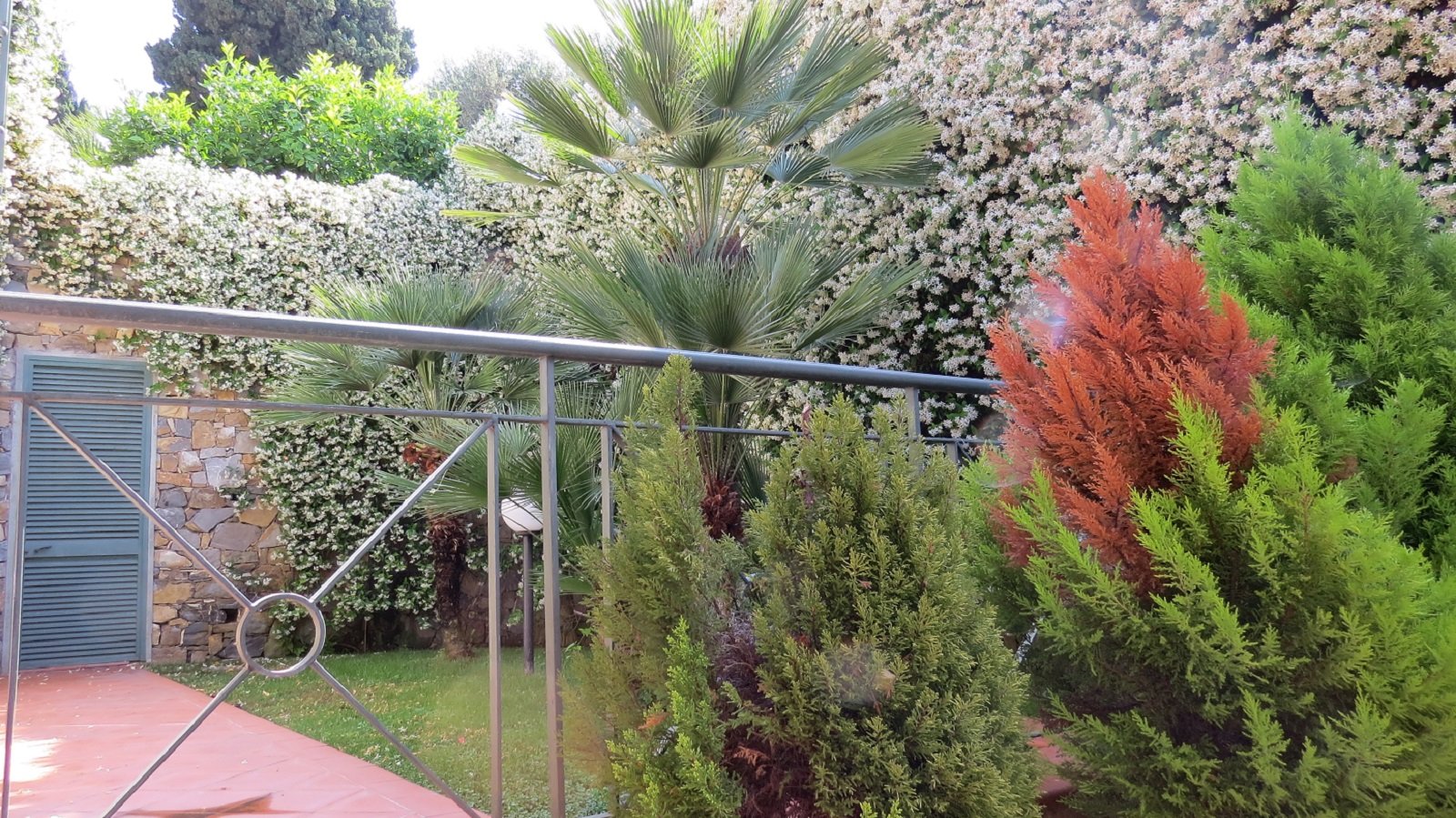 In zona collinare, comoda all'uscita autostradale, vendiamo graziosa villetta di circa 115 mq. vista mare e con piscina di nuova realizzazione, immersa nel verde, tra i fiori e i profumi mediterranei. Dalla loggia porta di entrata su disimpegno, due camere da letto, due bagni, una lavanderia, cucina abitabile e sala accerchiata dal prato e con uscita sul portico. Il giardino è di circa 300 mq. e a completare la proprietà ci sono due posti auto scoperti.