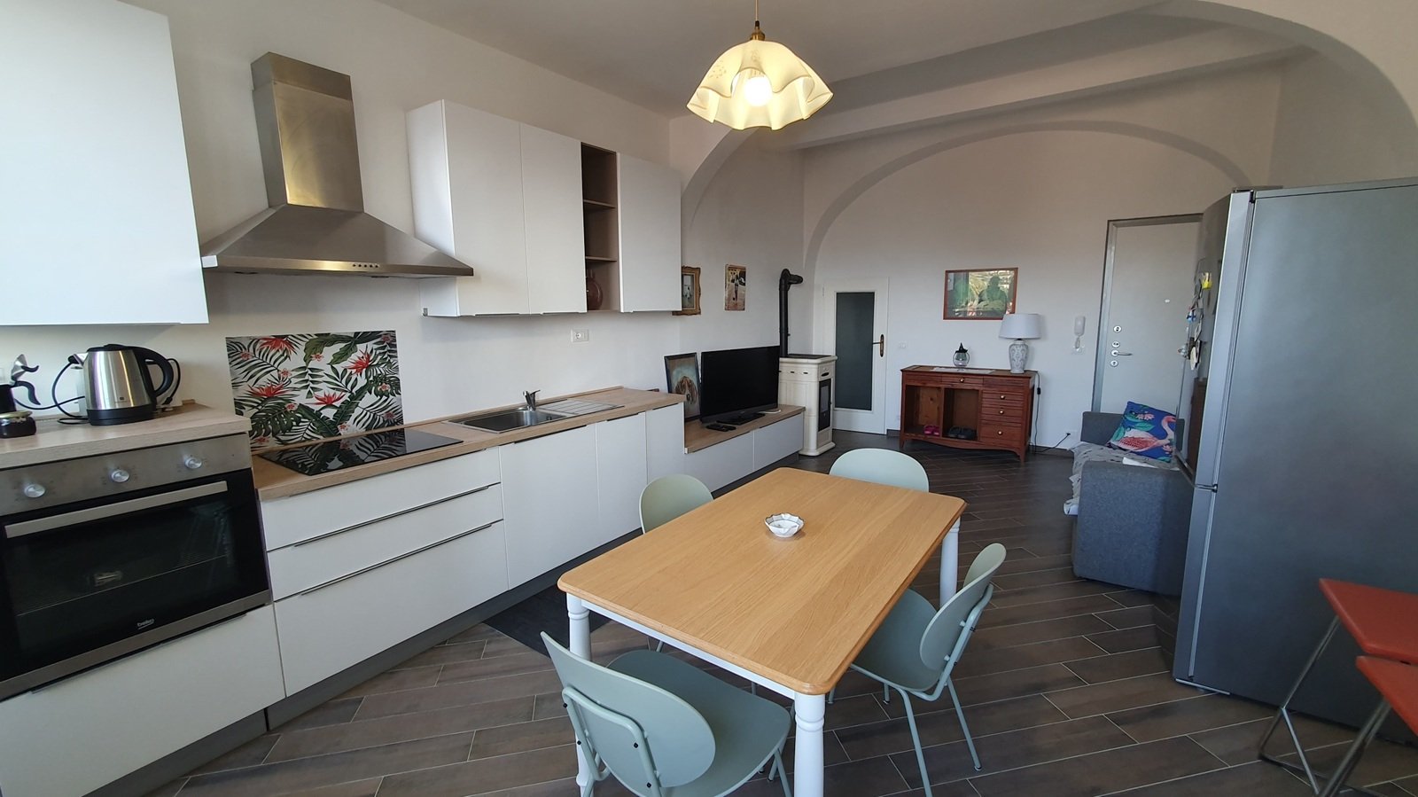 Nel vivacissimo centro storico di Bordighera proponiamo in vendita un appartamento bilocale ristrutturato di 57 m2 al terzo piano con vista aperta sul mare e sulla collina in stabile da poco oggetto di rifacimento intonaci facciata con cappotto e isolamento coperture al fine di migliorare la prestazione di efficienza energetica. Entrata nel luminoso soggiorno con cucina a vista, una camera da letto, un disimpegno, un bagno finestrato. No terrazzo o balcone. Il riscaldamento è indipendente con stufa a pellet, l'acqua calda è prodotta da boiler elettrico, la cucina è dotata di piano cottura a induzione.