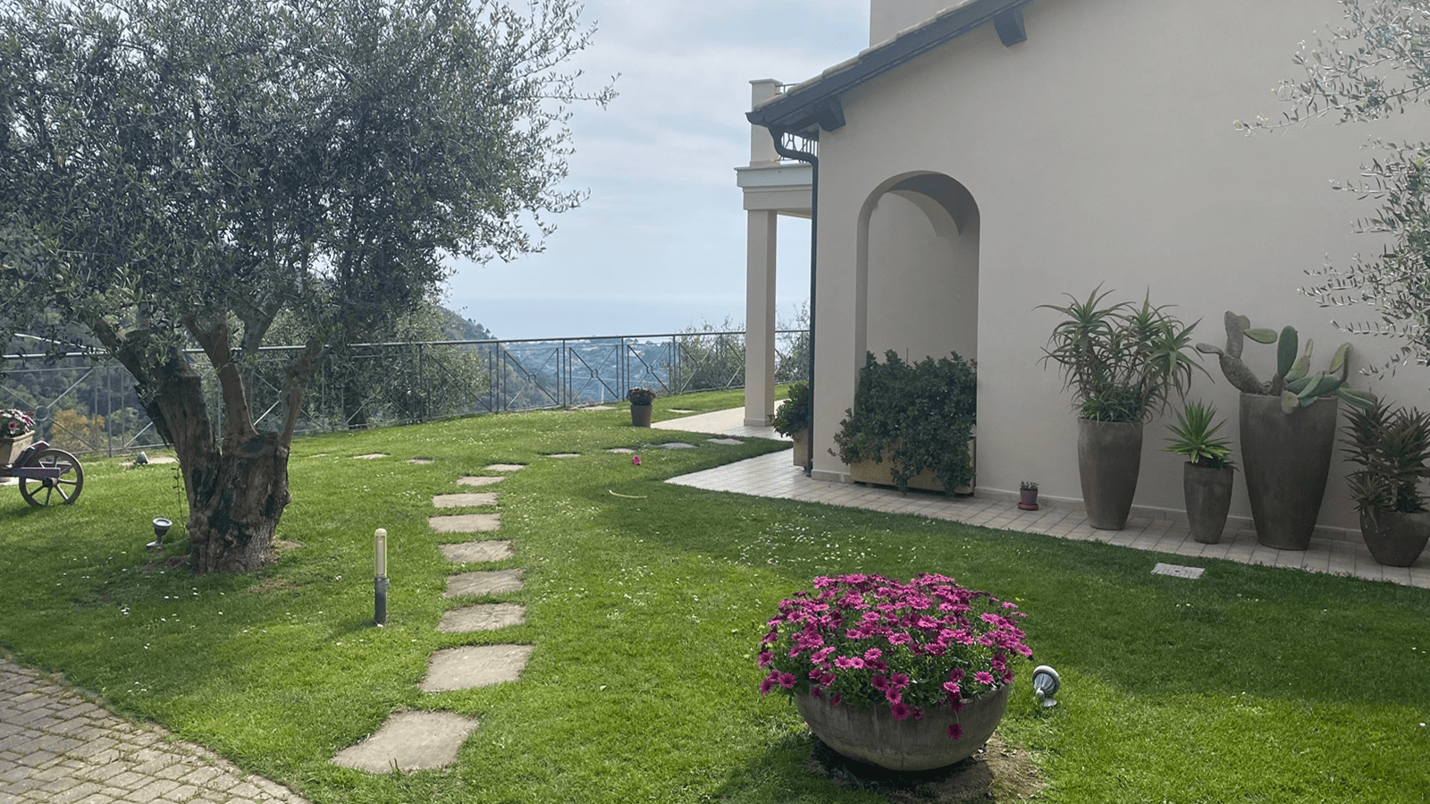 In posizione soleggiata a pochi minuti di auto dal centro di Bordighera e a soli 2 km. dal casello autostradale, con entrata alla proprietà di facile accesso dalla strada principale, proponiamo in vendita una graziosa villa edificata nell'anno 2008 con curatissimo giardino in location dominante il bosco e il mare. La proprietà si compone di una villa di 223 m2 su due livelli più portico di 60 m2 e 70 m2 di terrazze, due box doppi da 35 m2 cadauno e due posti auto scoperti oltre a circa 1500 m2 di giardino all'interno del quale si trovano anche dieci piante di olivo. Al piano terra entrata nella zona giorno con cucina a vista, zona pranzo e ampio salone che apre sul portico e sul giardino, un bagno, una lavanderia, due differenti scale - quasi un elemento di arredo - che portano al piano superiore dove si trovano tre camere da letto che aprono sulle terrazze, un dressing e due raffinati bagni. Riscaldamento indipendente, aria condizionata, sistema di allarme.