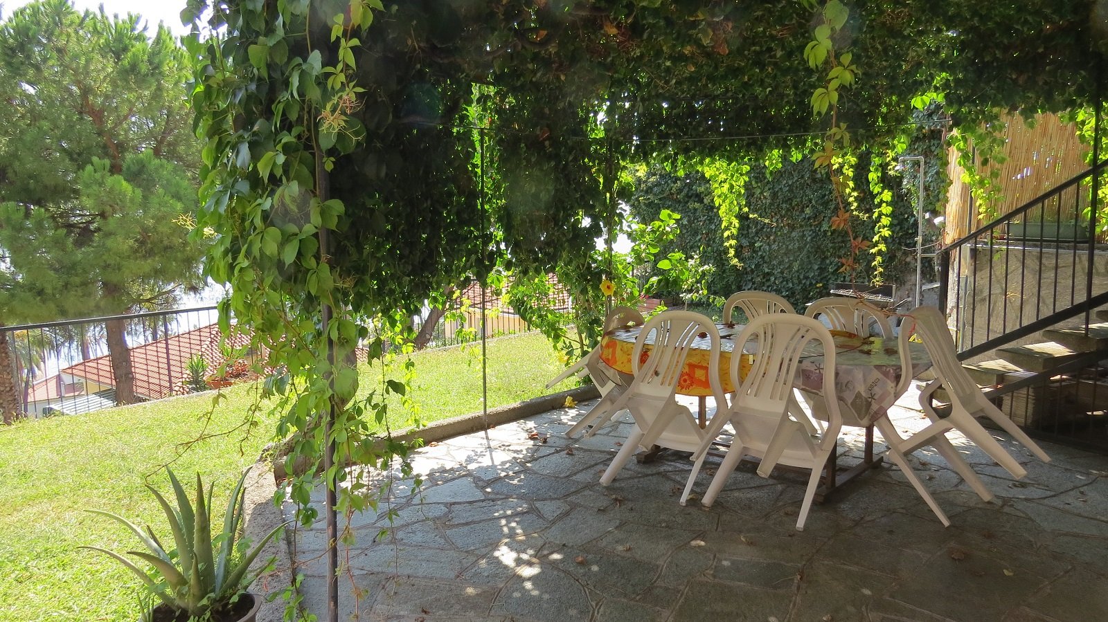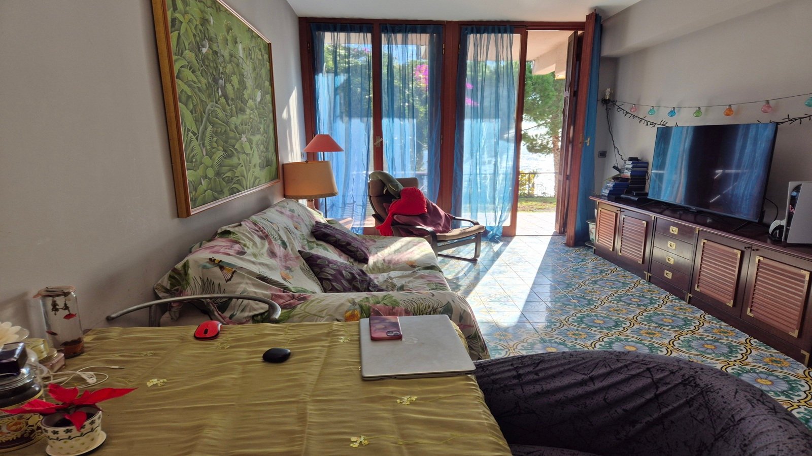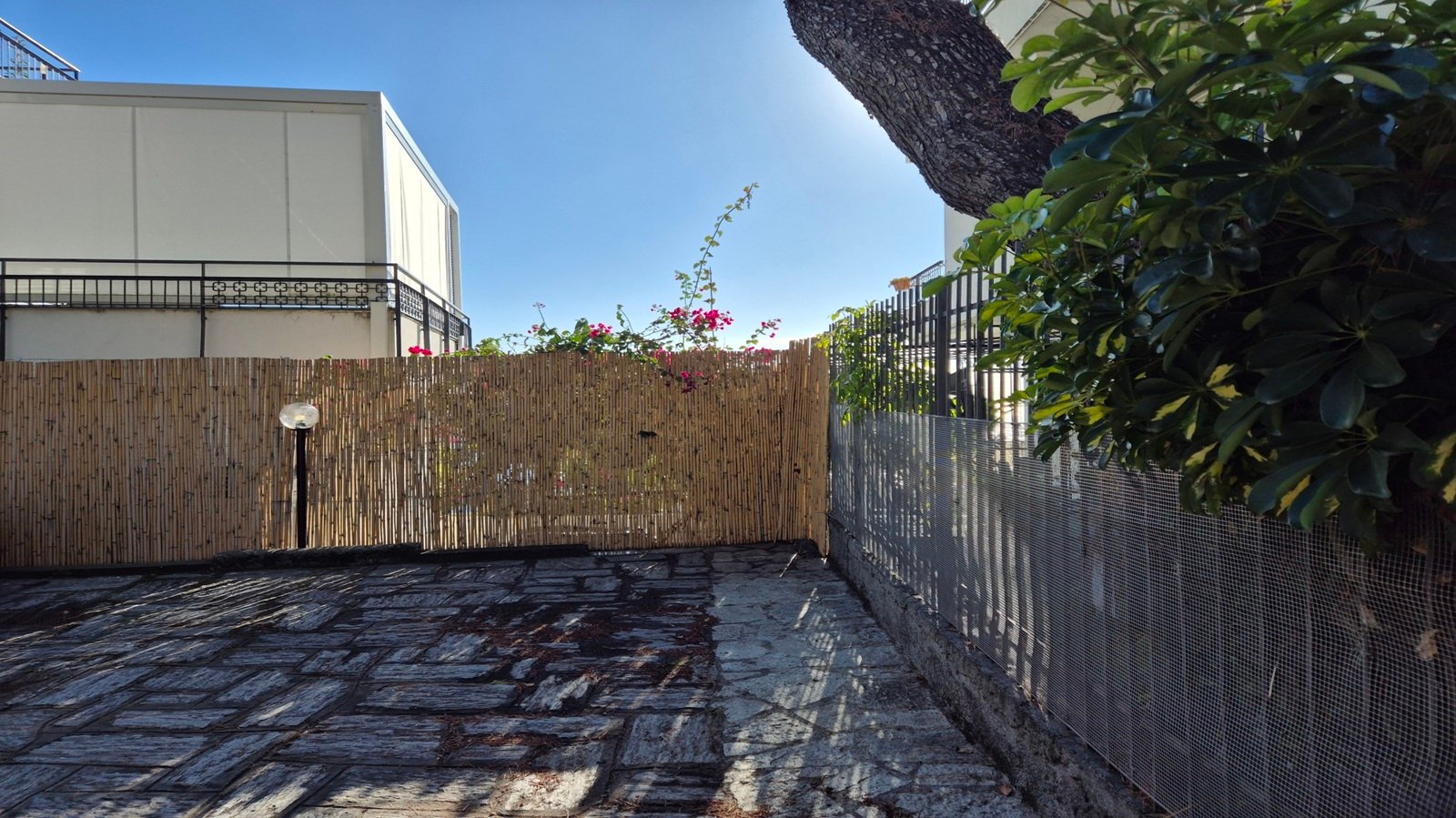 Sulla prima collina con piena vista mare, alle spalle del centro storico, in piccola palazzina di sole tre unità abitative proponiamo in vendita un appartamento di 107 m2 con giardino privato di 174 m2 e posto auto di proprietà. L'entrata all'appartamento è sul disimpegno al piano terra dove una scala interna porta direttamente al corridoio del piano sottostante che da accesso al salotto, alla cucina abitabile, alle due camere dal letto, al bagno, al ripostiglio e alla lavanderia. L'appartamento è esposto a sud e tutte le camere hanno accesso diretto al giardino. Il riscaldamento è indipendente e non ci sono spese di condominio.